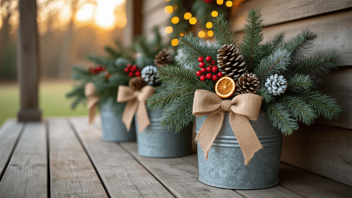 Start with what you already have. Those summer planters collecting dust in your garage? Perfect candidates for a holiday makeover.