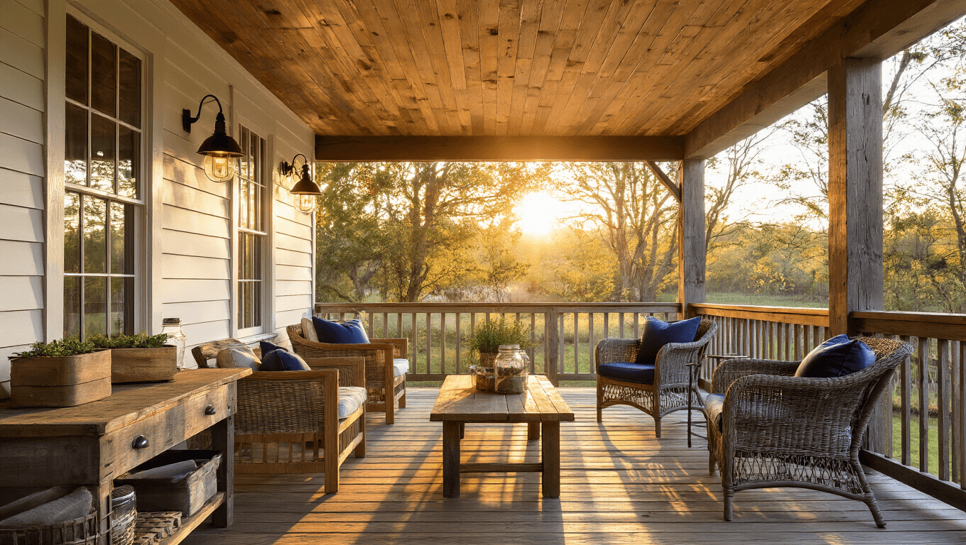 Warm-toned wood stain is what I chose for my main porch. Think honey, amber, golden oak—those mid-range tones that make the space feel like a hug. I used a wood stain in warm honey color, and every single person who visits comments on how cozy it feels. This works year-round and doesn’t argue with any season.