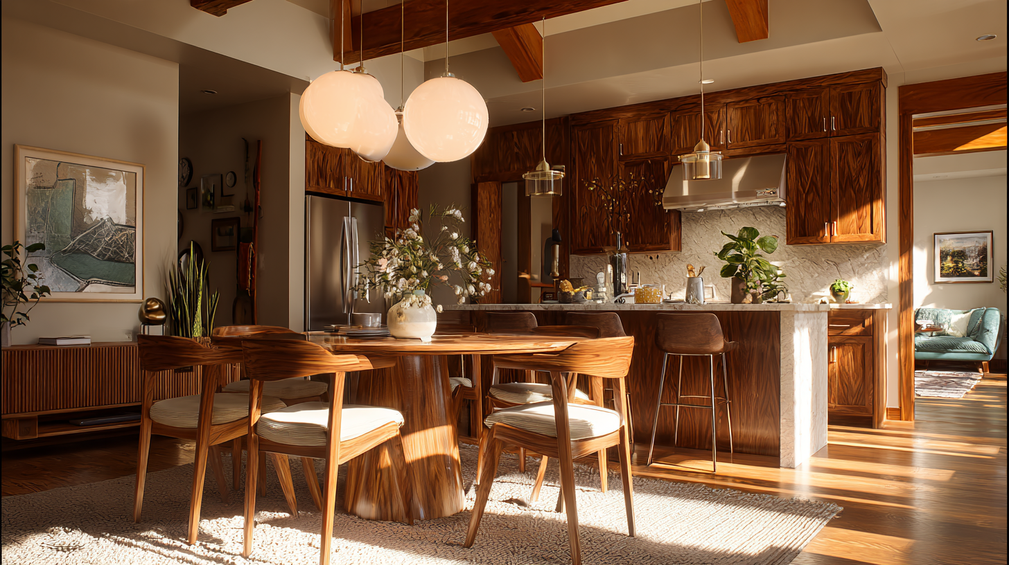 This kitchen feels like Sunday morning coffee with the newspaper—warm enough to linger, polished enough to host without stress. The sculptural lighting adds personality without competing with that gorgeous wood grain.